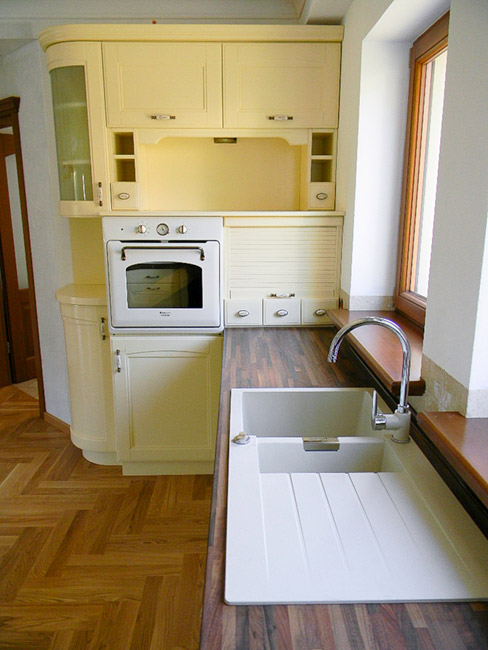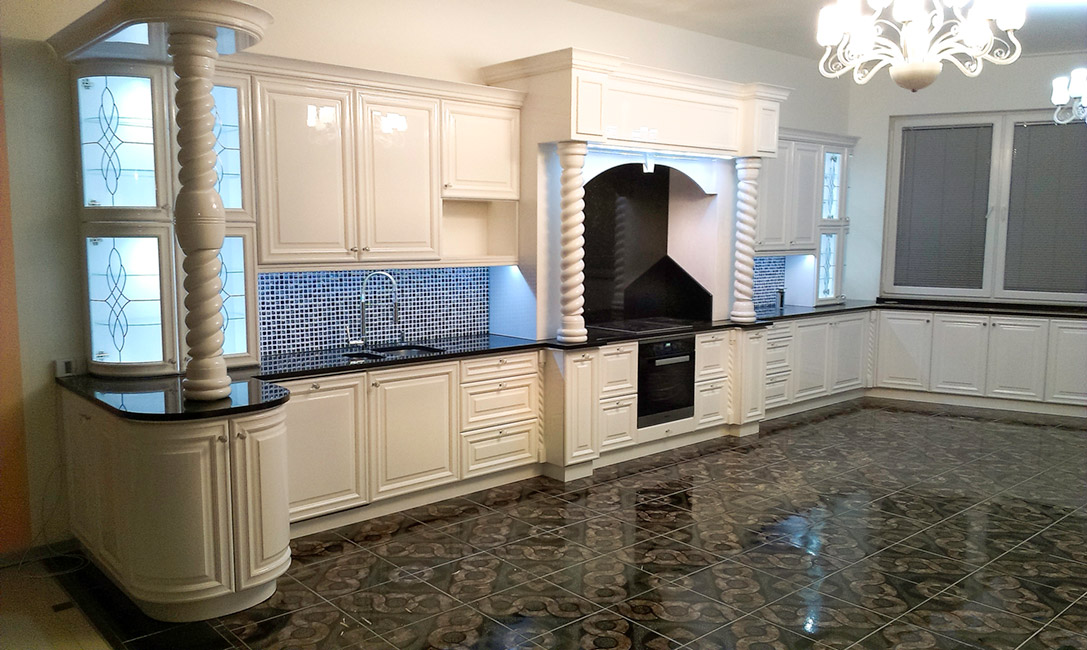 Takie właśnie są nasze kuchnie, wykonywane z najlepszej jakości materiałów by nieprzerwanie służyć naszym klientom, ich dzieciom i wnukom. Potężne dębowe szafy, przeplatają się z małymi hebanowymi szufladkami na drobiazgi. Mosiężne uchwyty idealnie leżą w dłoni, a granitowe blaty dopełniają kompozycje w stylu Vintage. A możne marzy Ci się kuchnia prosto z łazienek królewskich? Białe bogato zdobione fronty dopełnione spiralnymi kolumnami sprawiają wrażenie monumentalności i przepychu. Możliwość wykreowania stylu wielu kultur daje idealnie harmonijną kuchnie, która spełni wymagania właściciela.